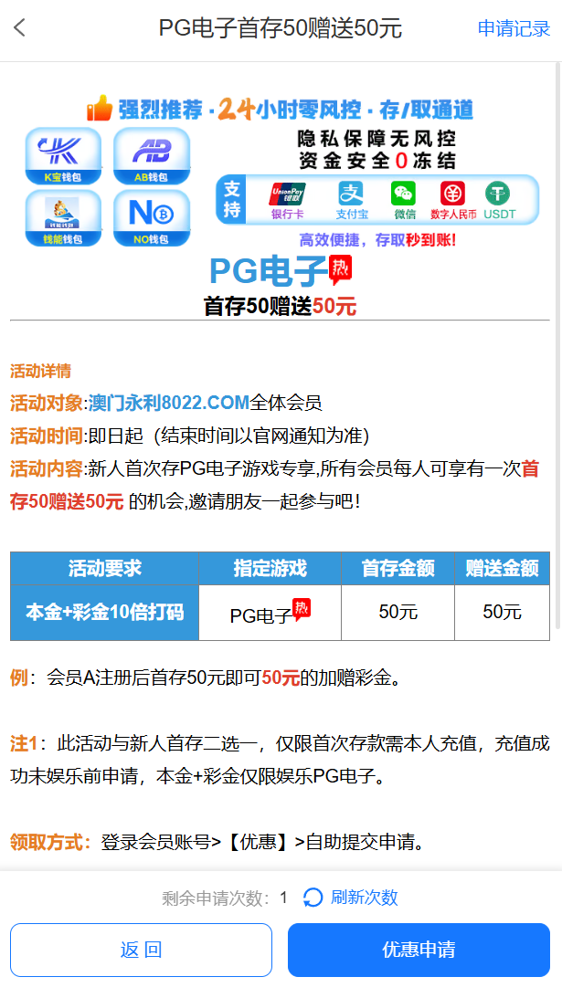 ⚜️新用户首存送百分百⚜️✅【新人首存方案一】首存50送50(仅限娱乐PG电子)✅【新人首存方案二】首次存款奖励8888/二存5888元/三存8888元✅下载APP注册即送22元,存款50送50元!✅天天红包雨,全民皆可抢8888元✅每日签到,领取神秘大奖。✅天天存 50 赠送 48 元 【PG电子以小博大】实力综合化平台!国际老品牌!大额存取秒到账!