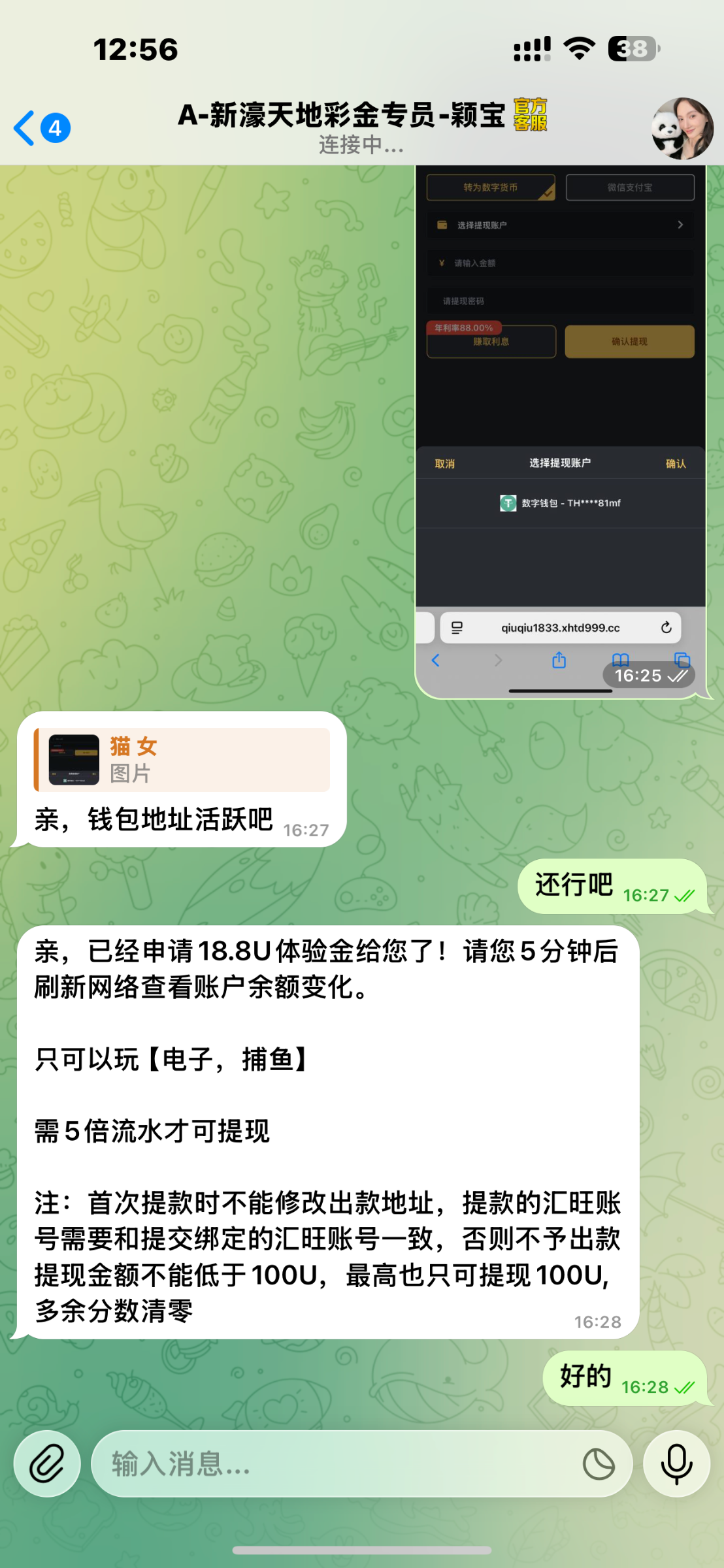 昨天就在送今天还没黄,联系飞机客服需要u充值录屏。不看钱包活跃有录屏就行。自己去吧