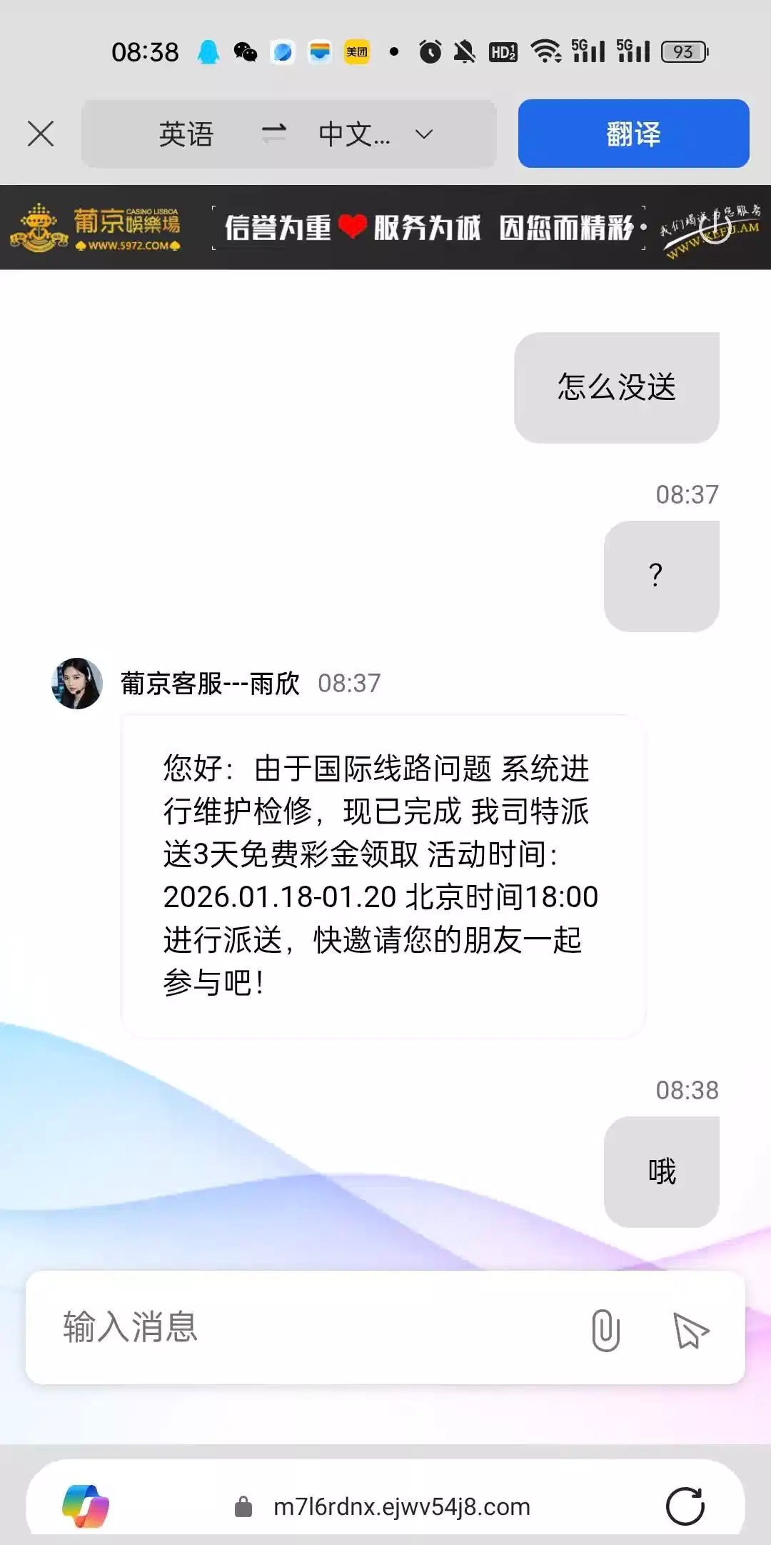 昨天维护了,今天18点到20号每天都送免费彩金,有号的等着去吧,没有无视即可