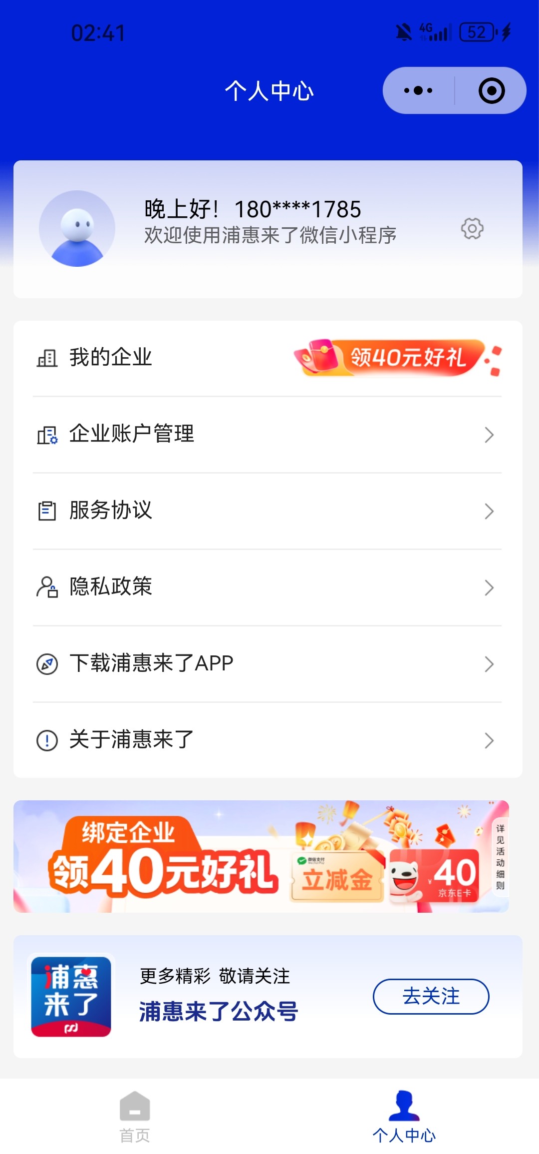 企业还得是法定代表人 微信小程序搜索普惠来了进去绑定企业 然后点个人中心下面有一个绑定企业领取40元好礼 要选京东e卡40 然后输入自己法人的电话号码验证通过等5-10分钟短信会给你发链接点开复制卡密去微信搜索京旺回收回收就行然后就可以白嫖了40卡面值36.8到账