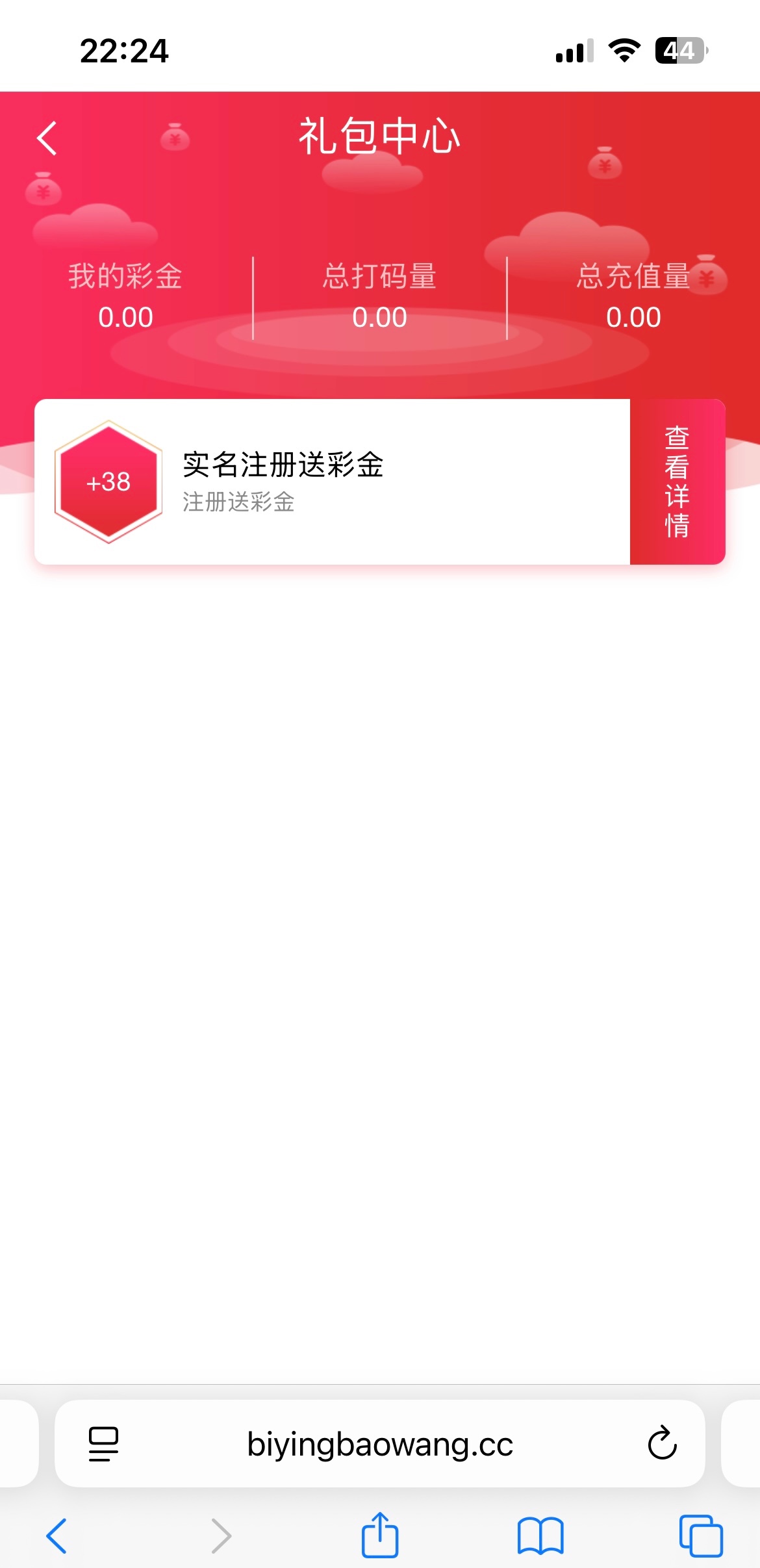 礼包中心领取新人实名彩金38元最低提款100