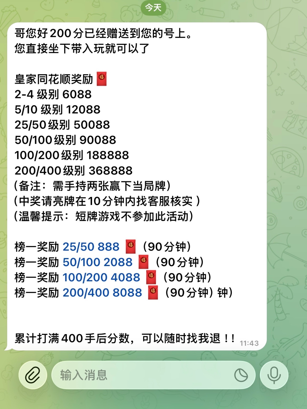 都要打满400手下分,感兴趣去试试